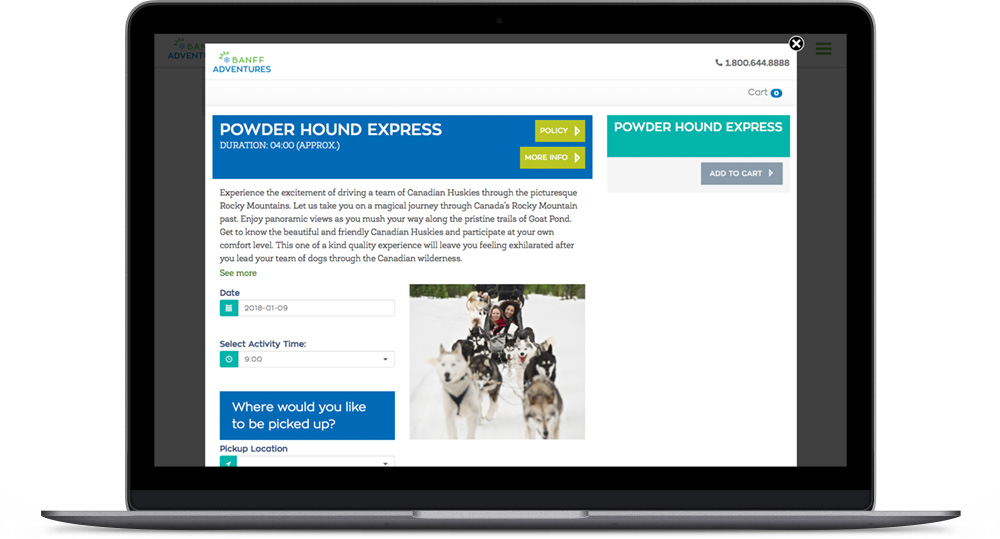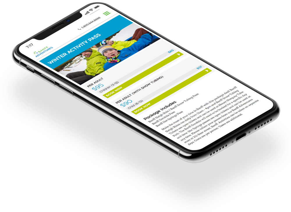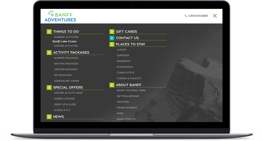 The Banff Adventures website is an example of design that delivers an excellent customer service experience. One of the challenges – but probably the biggest success of the project – was the integration with the online booking system. Allowing data to be chosen and displayed in varying templated layouts was rewarding in the end for both the client and ourselves. As a result, traffic and sales conversions were increased significantly.